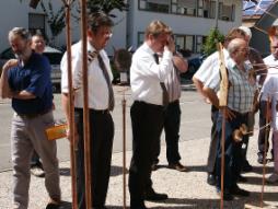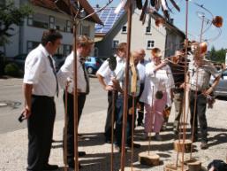 Von Links Bürgermeister Herr Gombold, Ortsvorsteherin Vilsingen Frau Gombold-Diels, Kunstklempner Dieter Dreher, MdB.Herr Bareiß, Ortsvorsteher von Engelswies Herr Briegel.